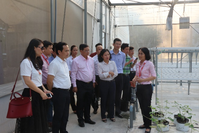 The delegation continued to visit Agriculture Center of Excellence, which applies new technologies, takes advantage of internet and cloud computing platform to increase productivity in farming operation. This center has constantly been improving and testing new models and solutions such as planting vegetables in containers, hydroponic vegetables growing, sowing robots, etc,.