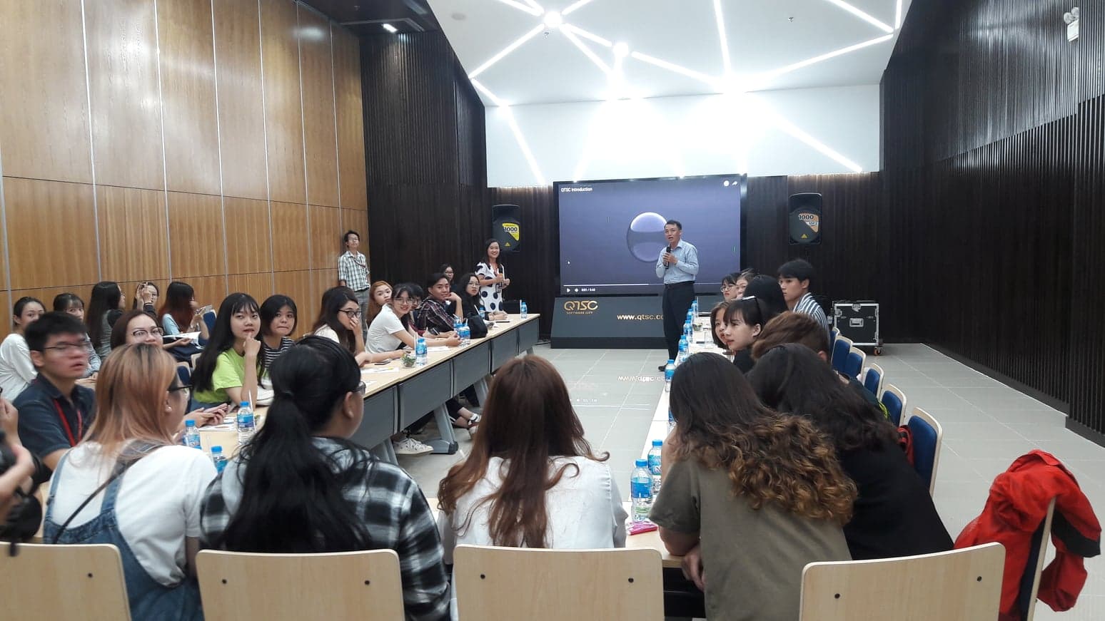Tại buổi tham quan thực tế, các bạn sinh viên đã nghe đại diện QTSC giới thiệu tổng quan về Công viên phần mềm Quang Trung, quy mô, nhiệm vụ, chức năng của QTSC cũng như một số doanh nghiệp thành công đang hoạt động tại đây. Bên cạnh đó, các bạn còn được chia sẻ mô hình thành phố thông minh và demo Hệ thống giám sát điều hành Công viên phần mềm Quang Trung (QTSC IOC).